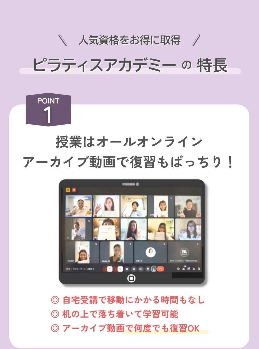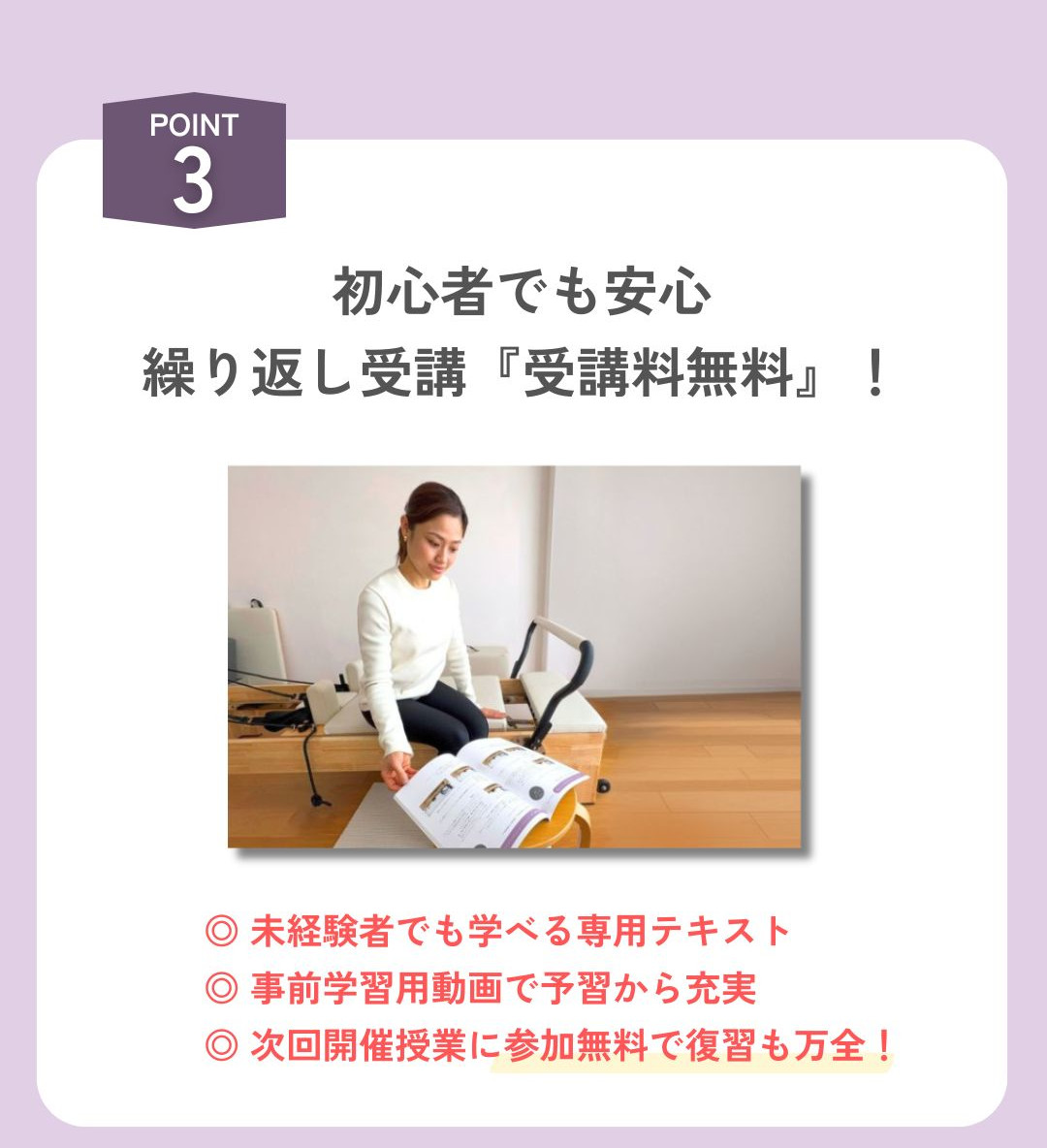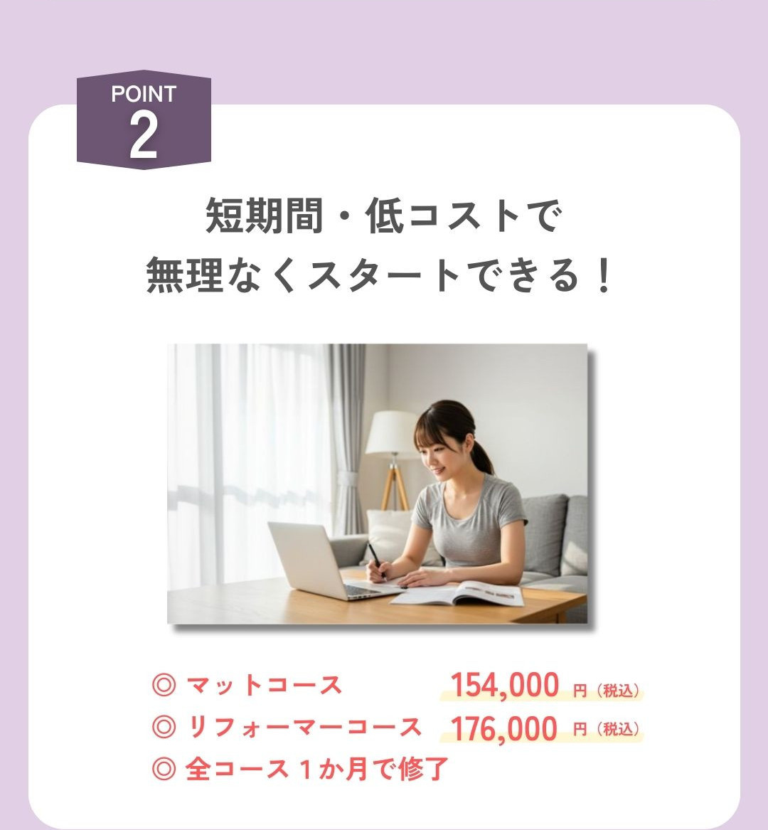 可能です。リフォーマ-コースだけを受講いただいても、ピラティスの基礎や知識を身につけていただけるようカリキュラムを作成しています。
